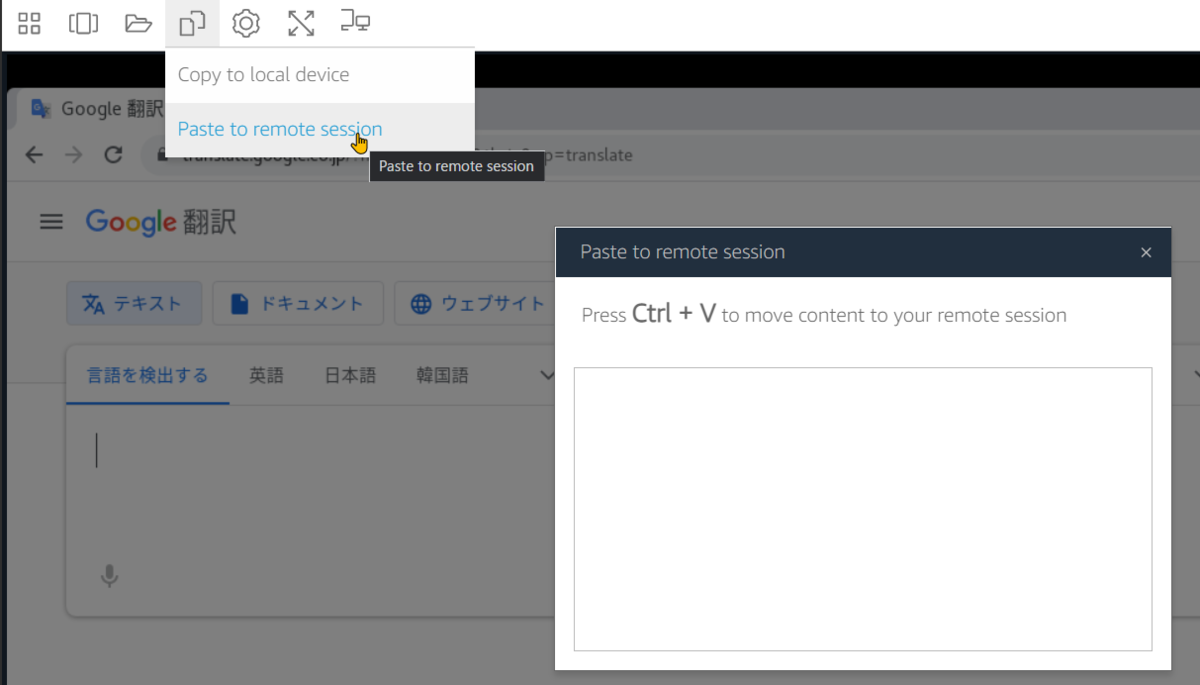 そうするとリモートセッション内でペースト(Ctrl + v)すると、ペーストできる。